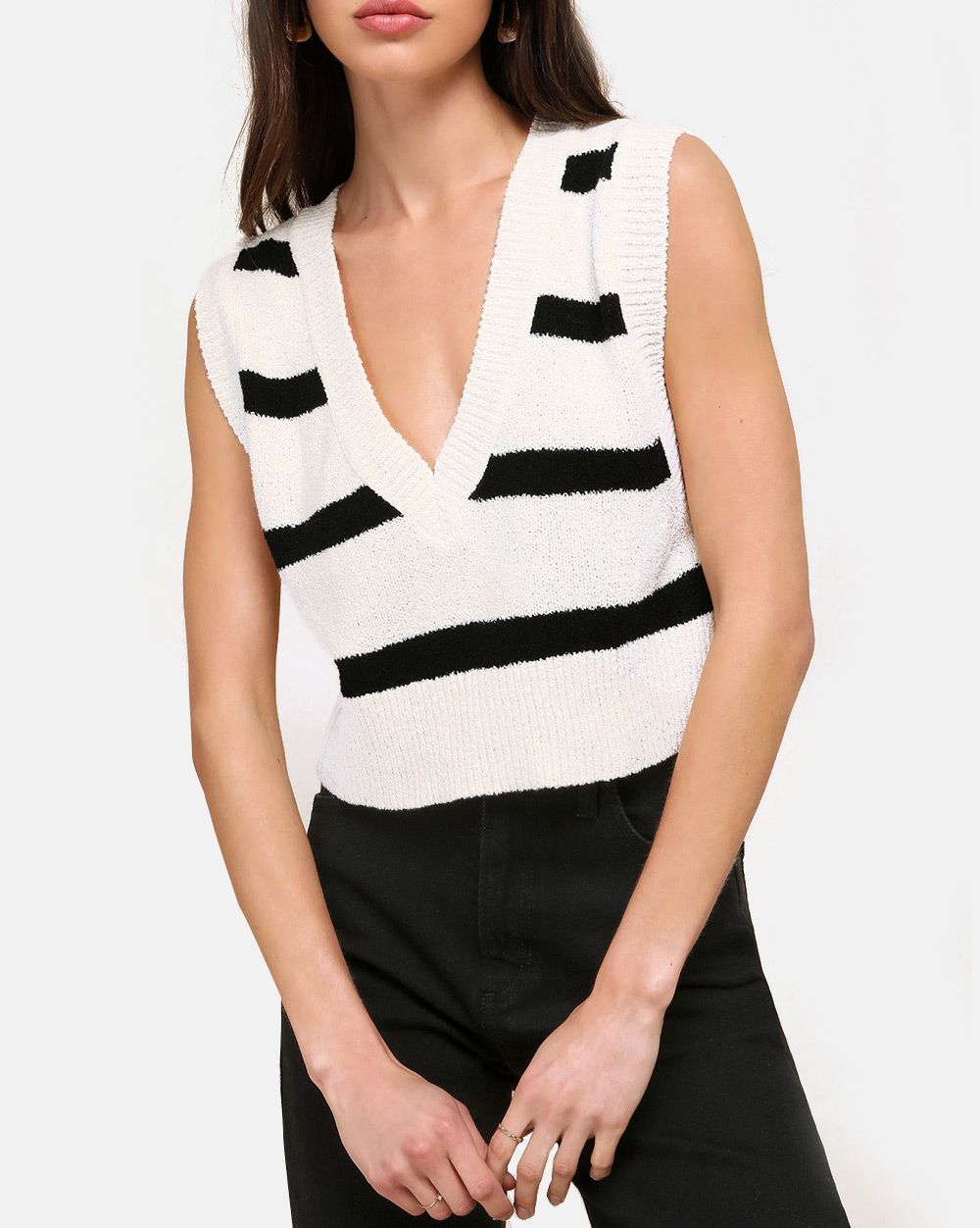 Black and White Striped Knit Sweater Vest Top