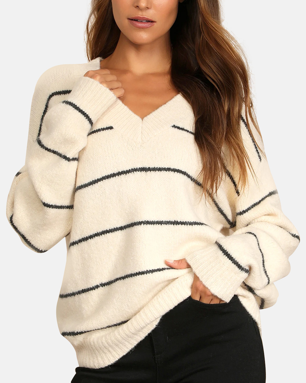 Get a Little Cozier Cream Striped Knit Oversized Sweater